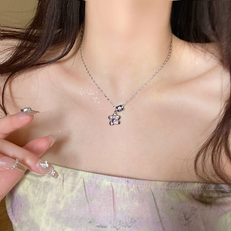 甘い風 ~ 紫のダイヤモンドの星のペンダントのネックレスの女性のinsの軽くて豪華な大衆の設計のギャルの鎖の骨の鎖の高級感の装飾品