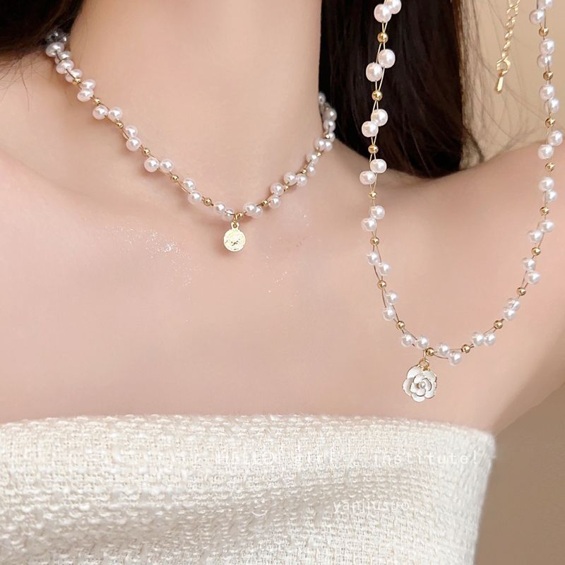真珠のコインの首のチェーンの女性の夏の軽豪華な大衆の高級感のネックレスのネットの赤い気質の鎖の鎖は首の装飾に合わせます。