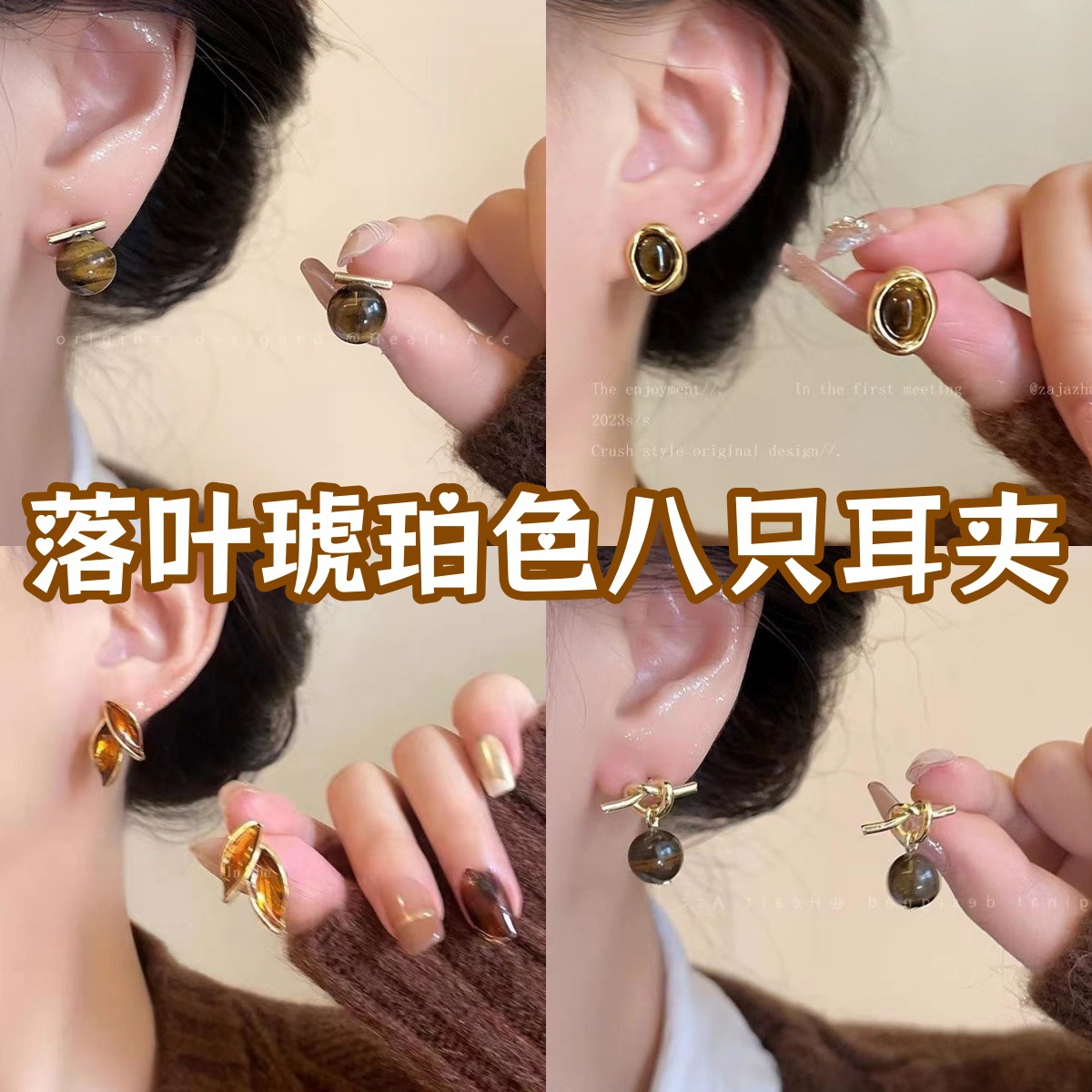美ラードの茶色の落葉の耳の挟みの女性の大衆の高級感の軽さの贅沢な耳の穴のイヤリングの気質は秋冬の耳飾りに似合います。