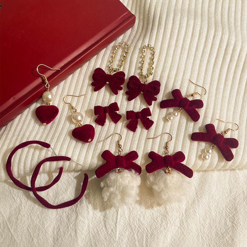 新年イヤリングレッドレトロ香港スタイルリボンパール新年イヤリング秋と冬の気質多用途ハイエンドイヤリング