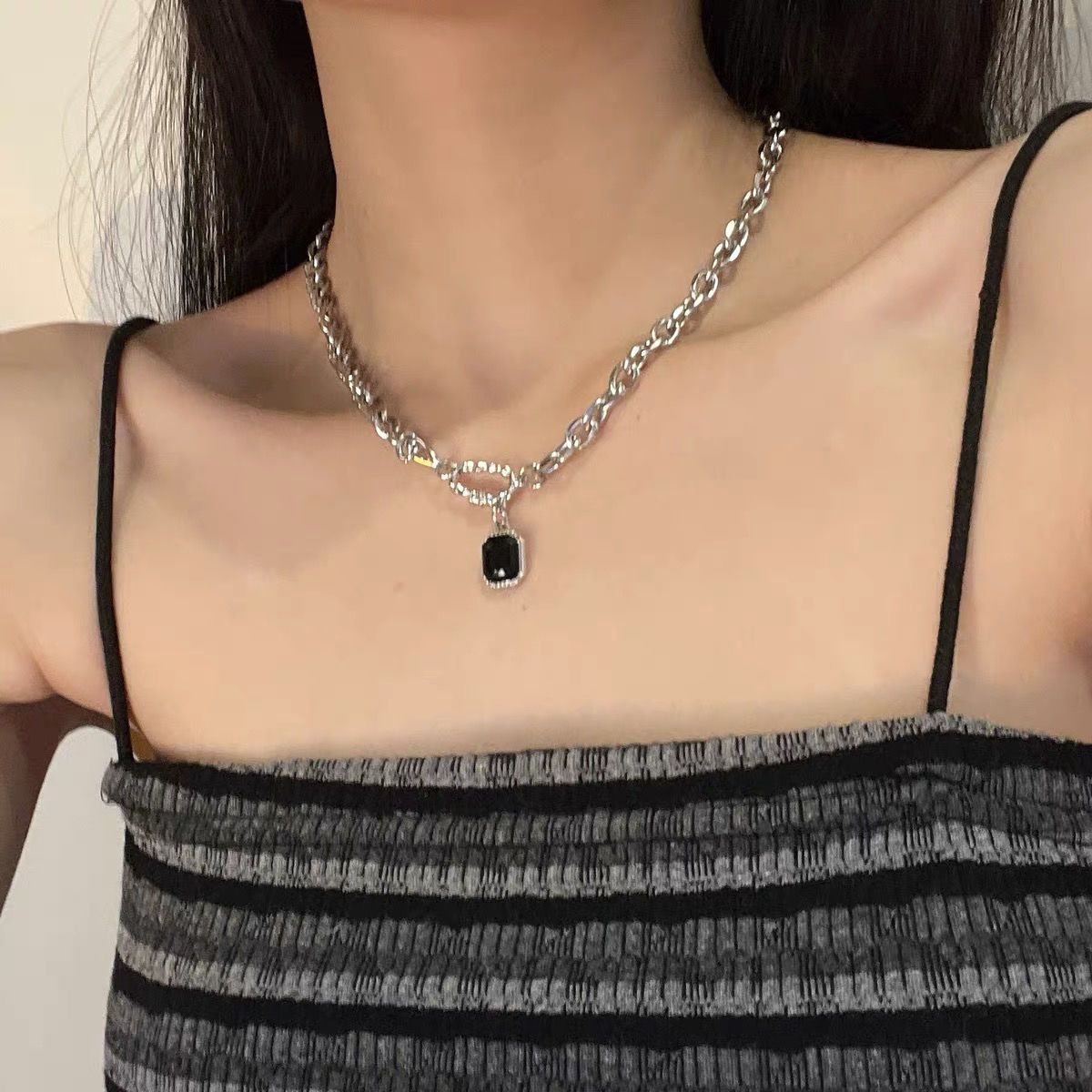 黒宝石のネックレス女ins潮軽豪華小衆ヒップホップの不規則なデザインに合わせてシンプルで高級感のある鎖
