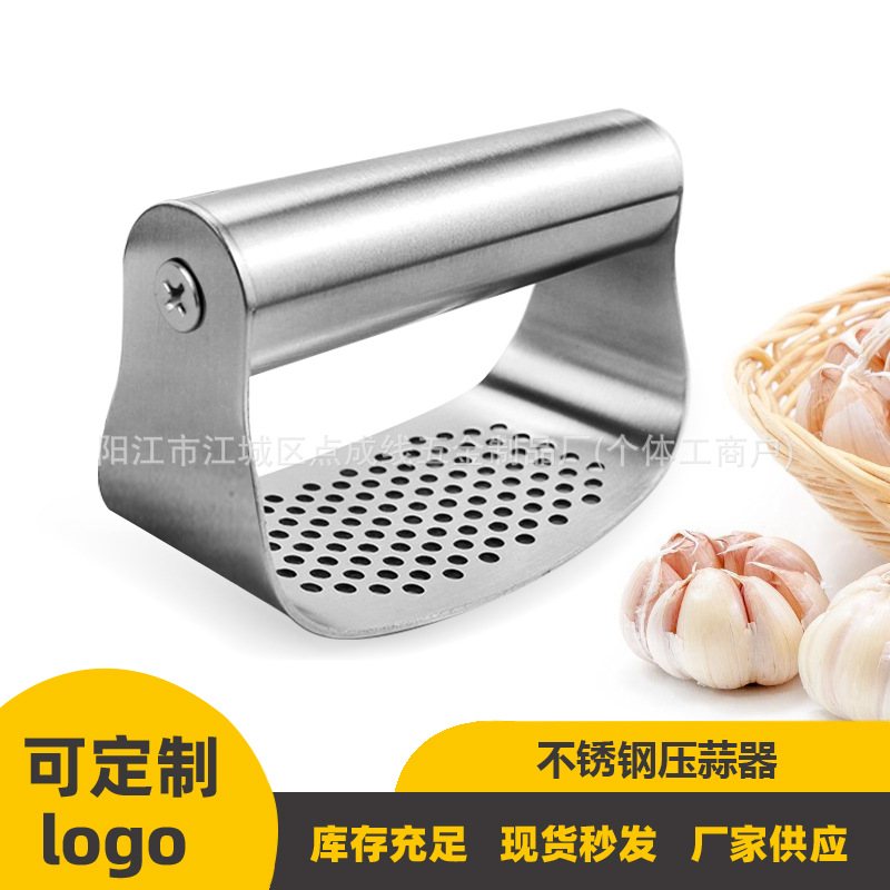 家庭用手動ガーリックプレス ステンレス製ガーリックプレス ガーリックマッシャー リング型全鋼製アーク型ガーリックグラインダー マッシャー