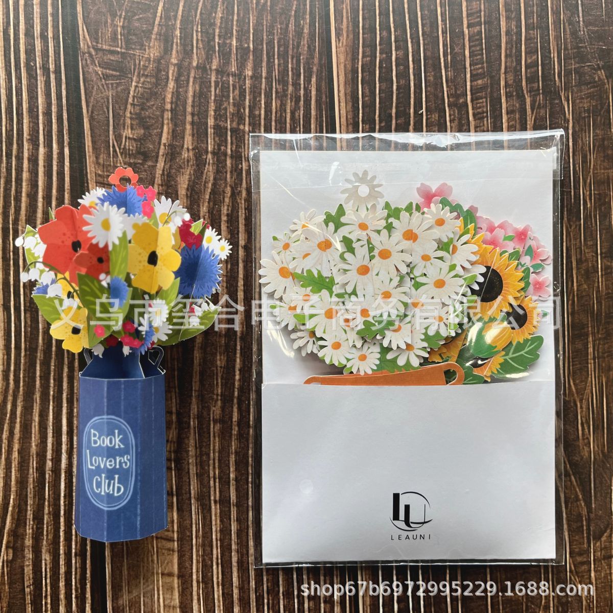 国境を越えたLeauni優雅な花束3dポップアップブックマークの新しいPop-Mark愛書人の最高の贈り物