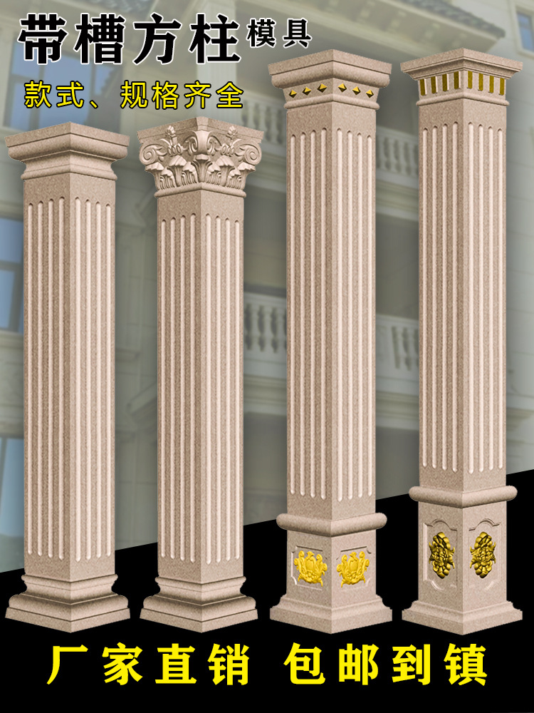 新しい厚みのあるローマ柱型ヴィラゲート溝付き角柱モデルヨーロッパセメント装飾テンプレート
