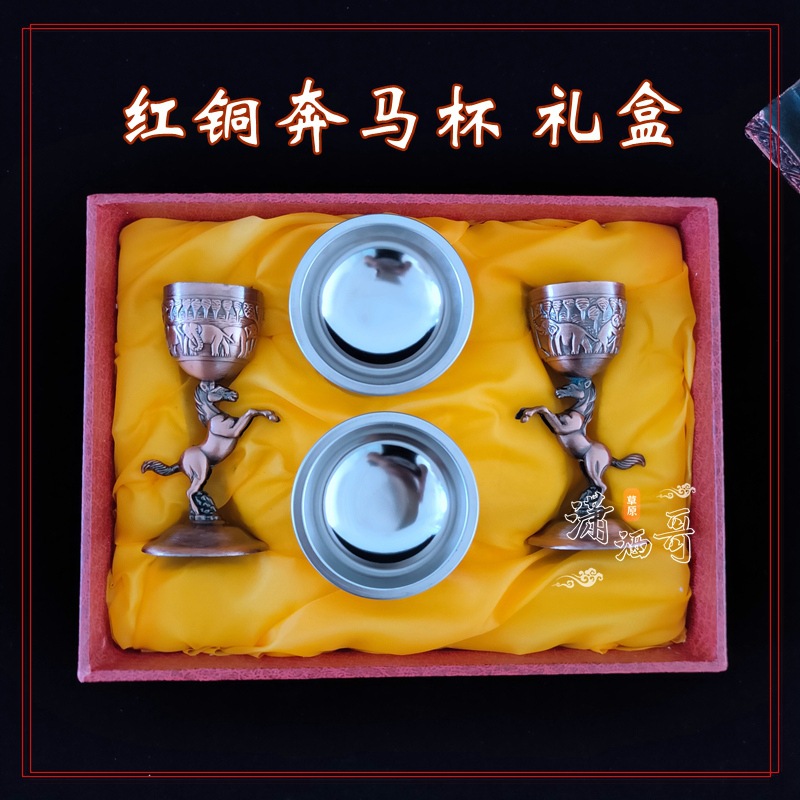 モンゴルワイングラスセット、銀ボウル付きワイングラス、赤銅ラウンドワイングラスギフトボックス、エスニックワインセット、送料無料