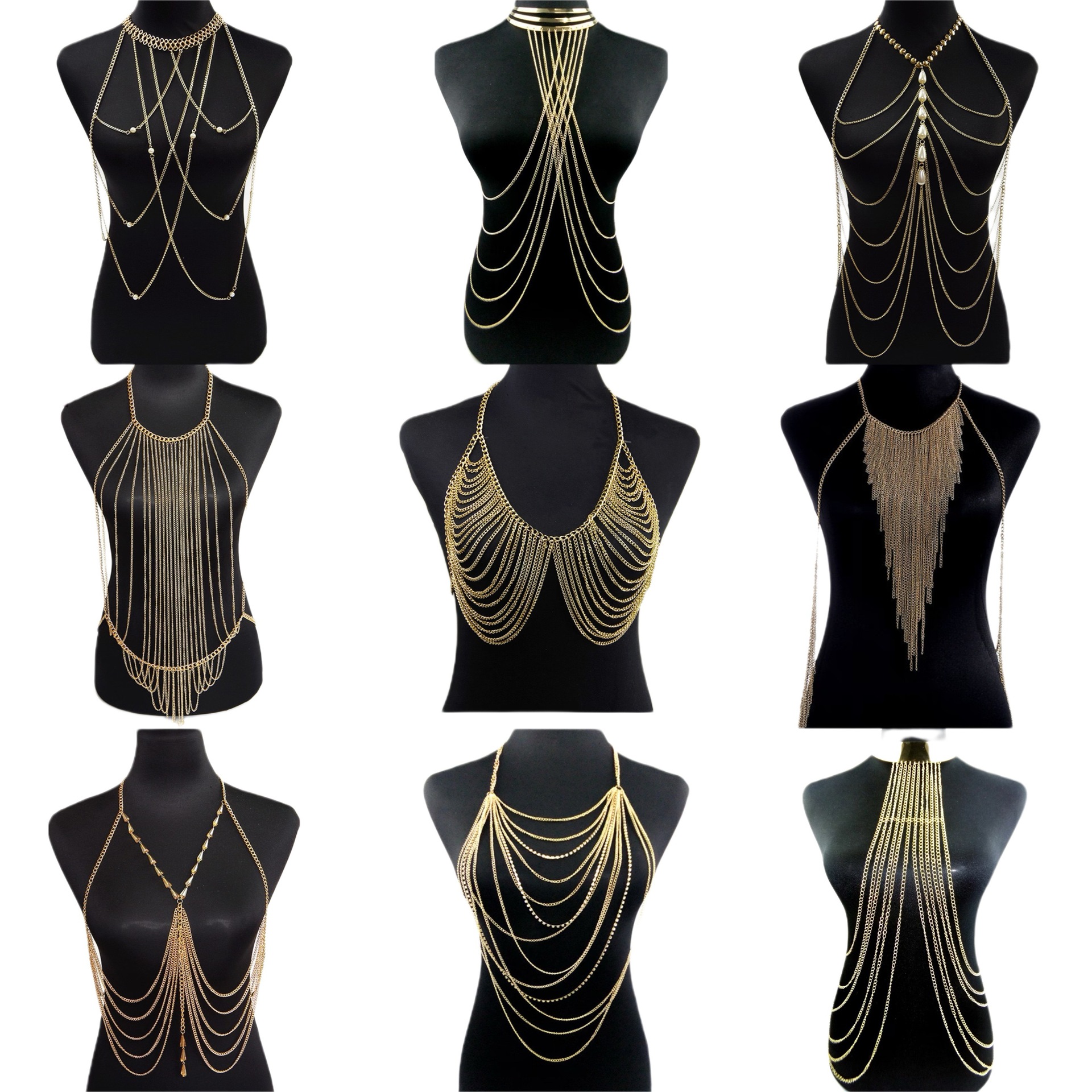 ヨーロッパとアメリカの重金属ボディチェーン N2291 シンプルな多層ヘビーデューティチェストチェーンウエストチェーンセットナイトクラブパフォーマンスアクセサリー