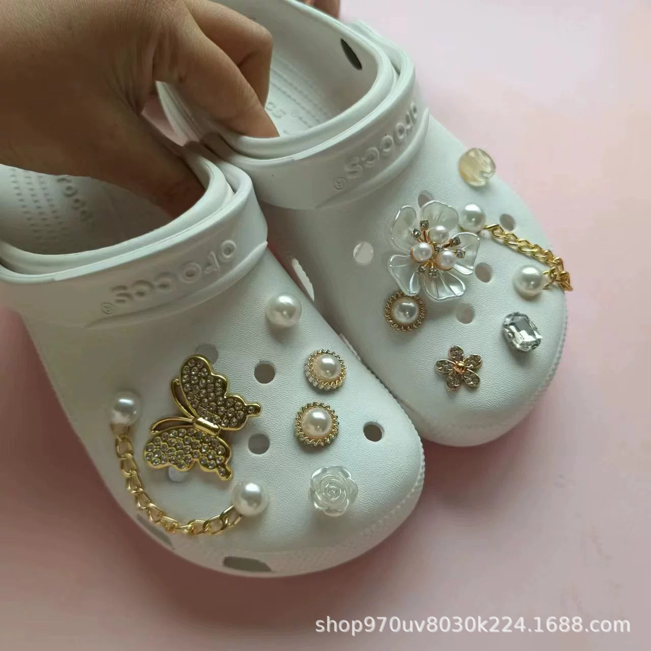 新しい洞靴DIYアクセサリー靴花靴バックル靴真珠蝶アクセサリー取り外し可能な卸売アクセサリー