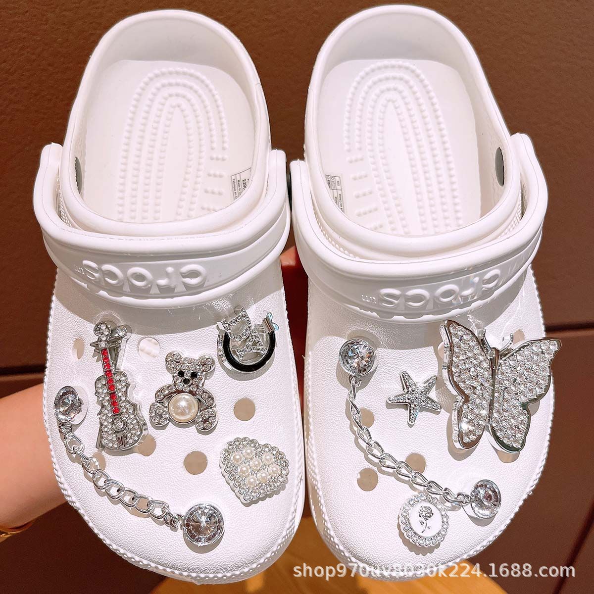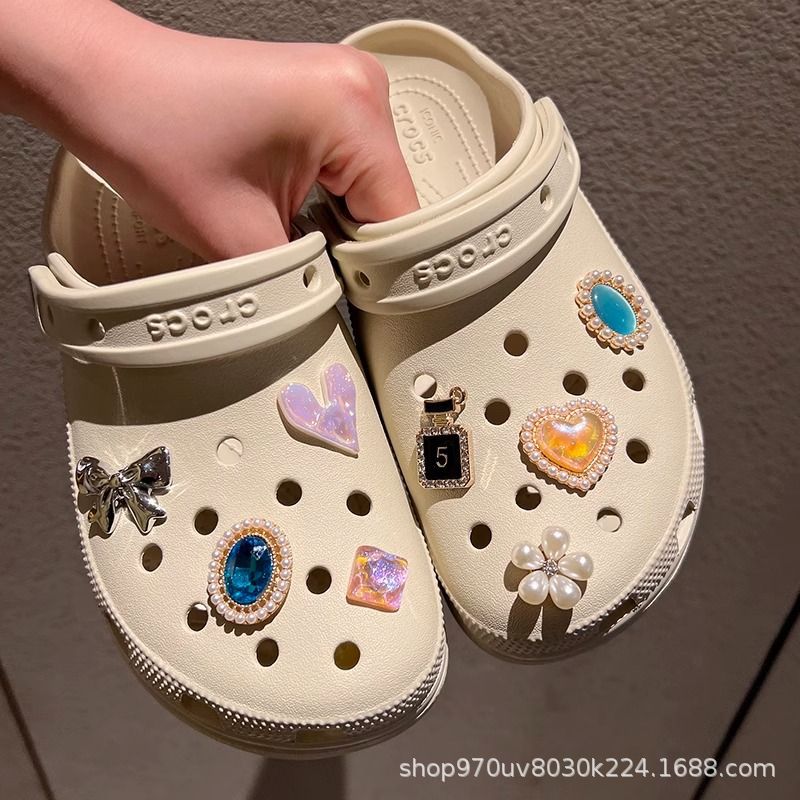 新しい国境を越えた洞窟靴アクセサリーdiy靴ボタン蝶ドリル真珠部品取り外し可能な花靴ボタンアクセサリー