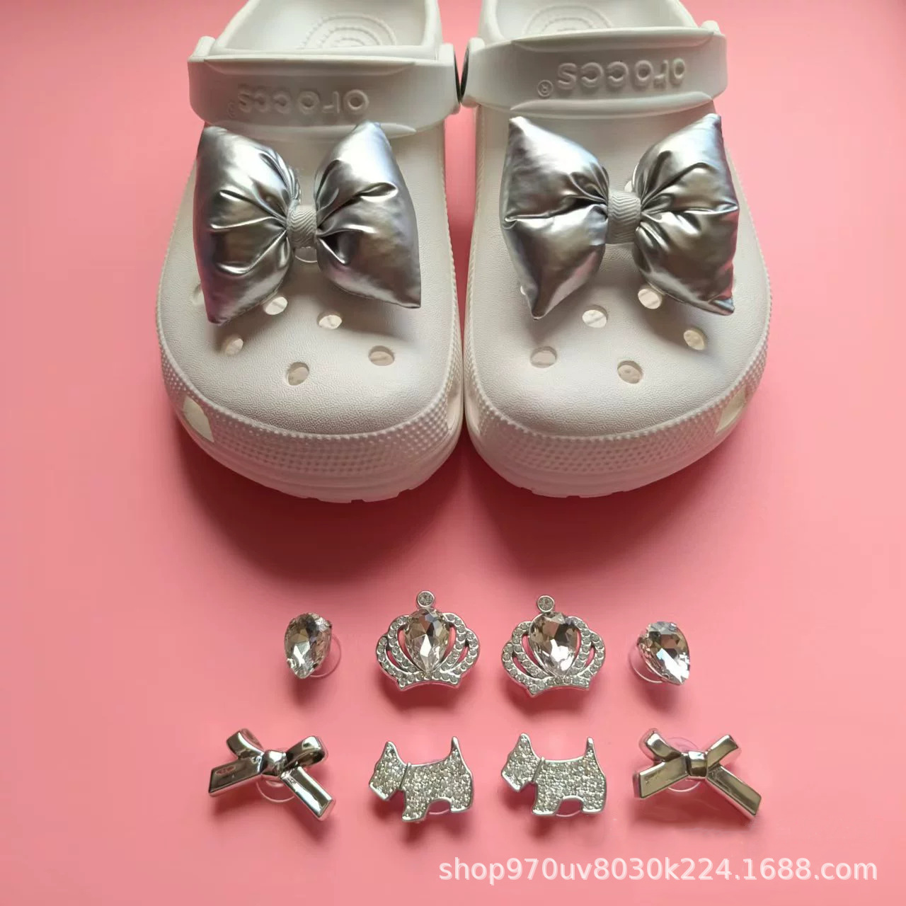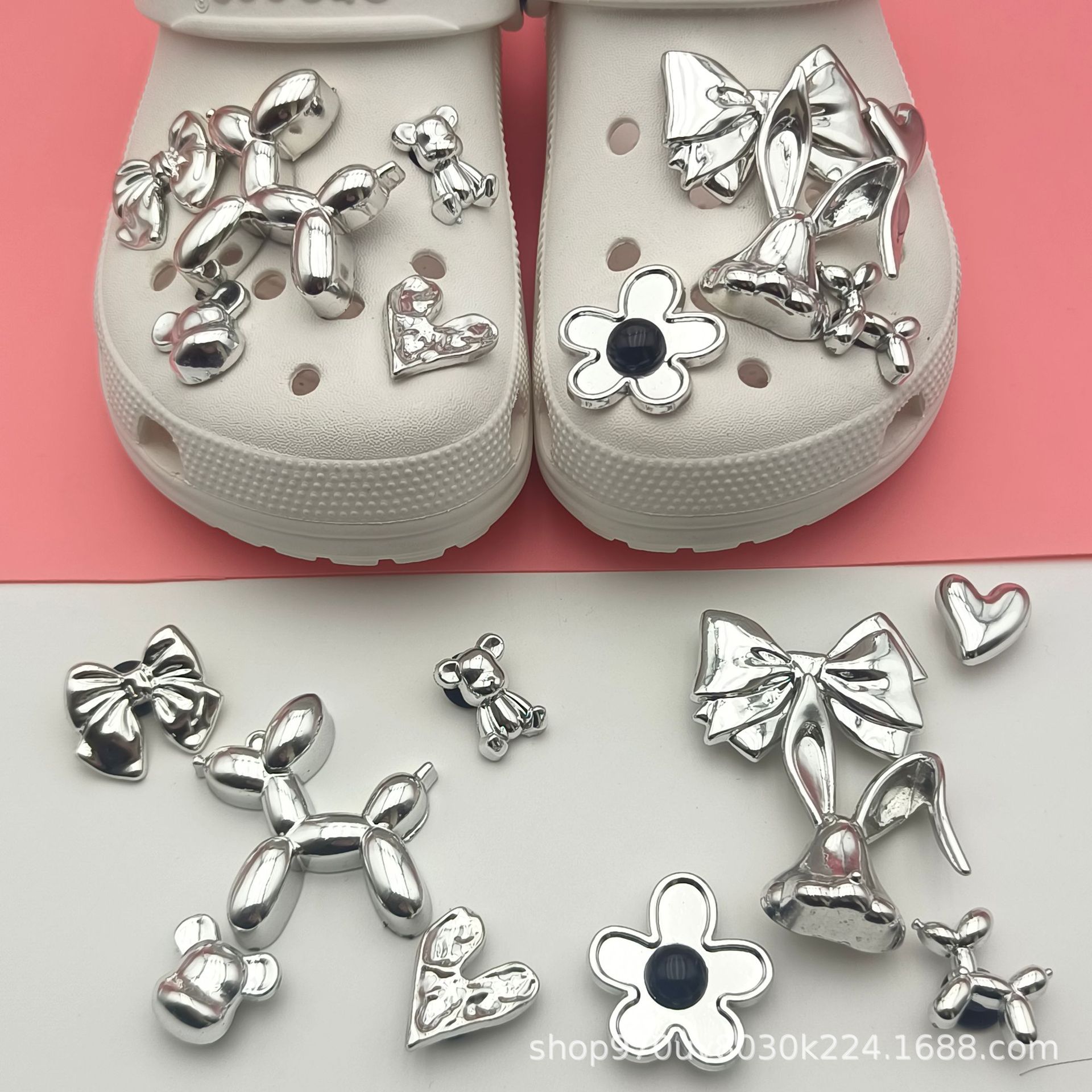 洞靴アクセサリー女性diy靴ボタン銀色蝶結び真珠ドリル取り外し可能装飾ボタン靴花クロス