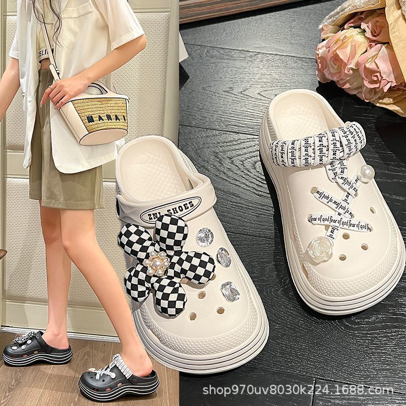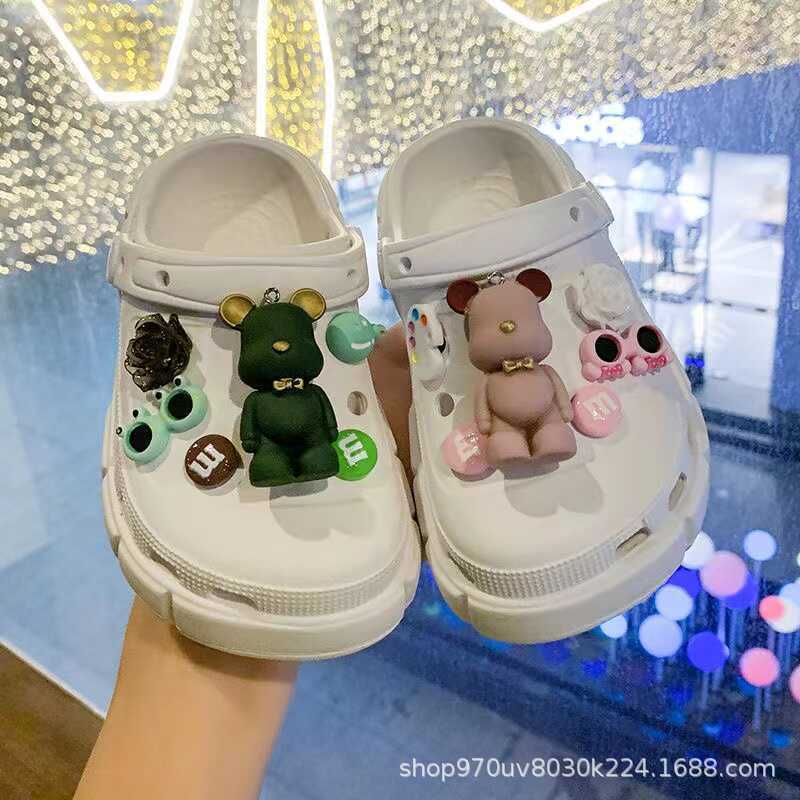 国境を越えたアマゾンの新型クロス洞靴高級感装飾愛格子熊洞靴花
