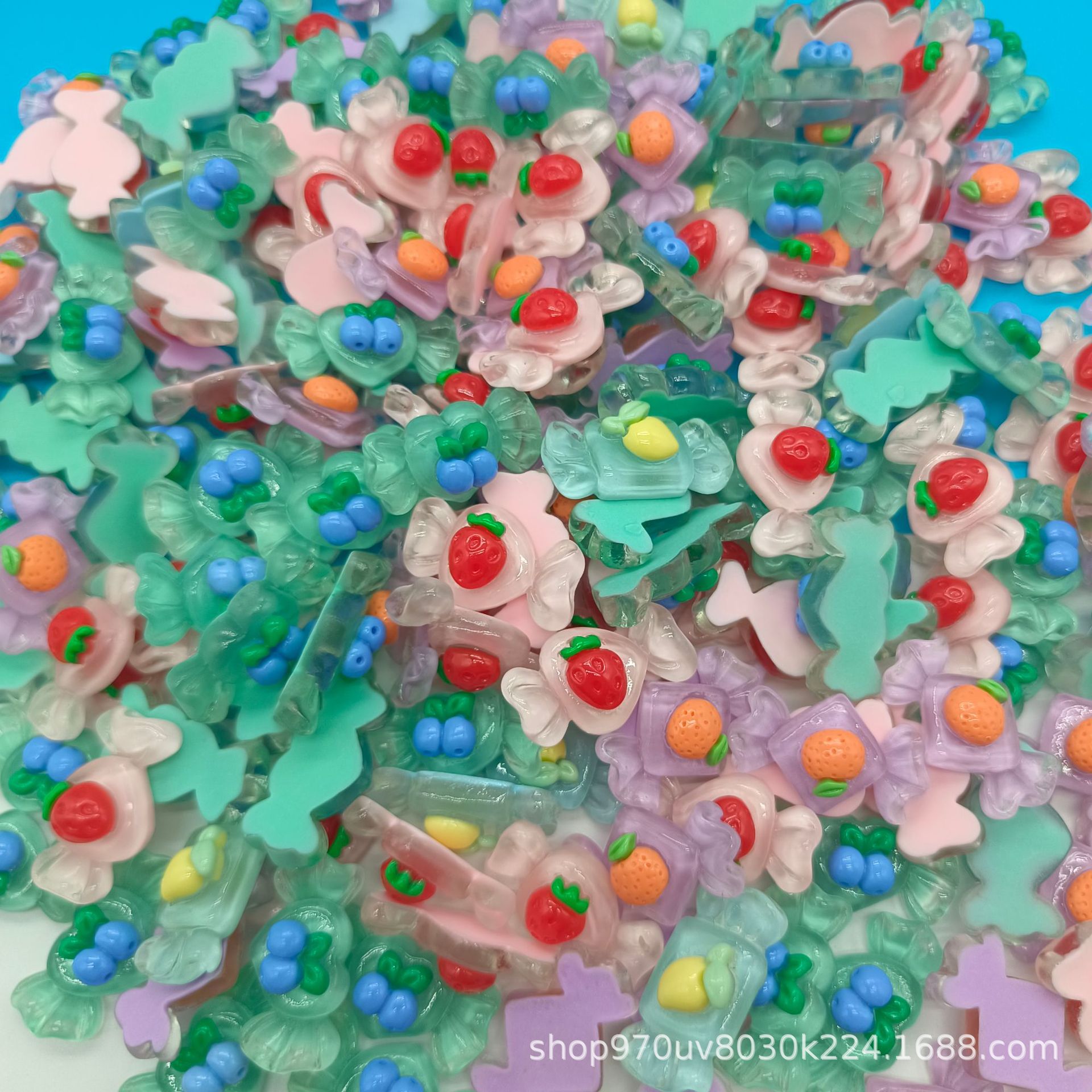 新しい透色散粉樹脂キャンディーアクセサリー携帯ケースアクセサリー穴靴バックルアクセサリー