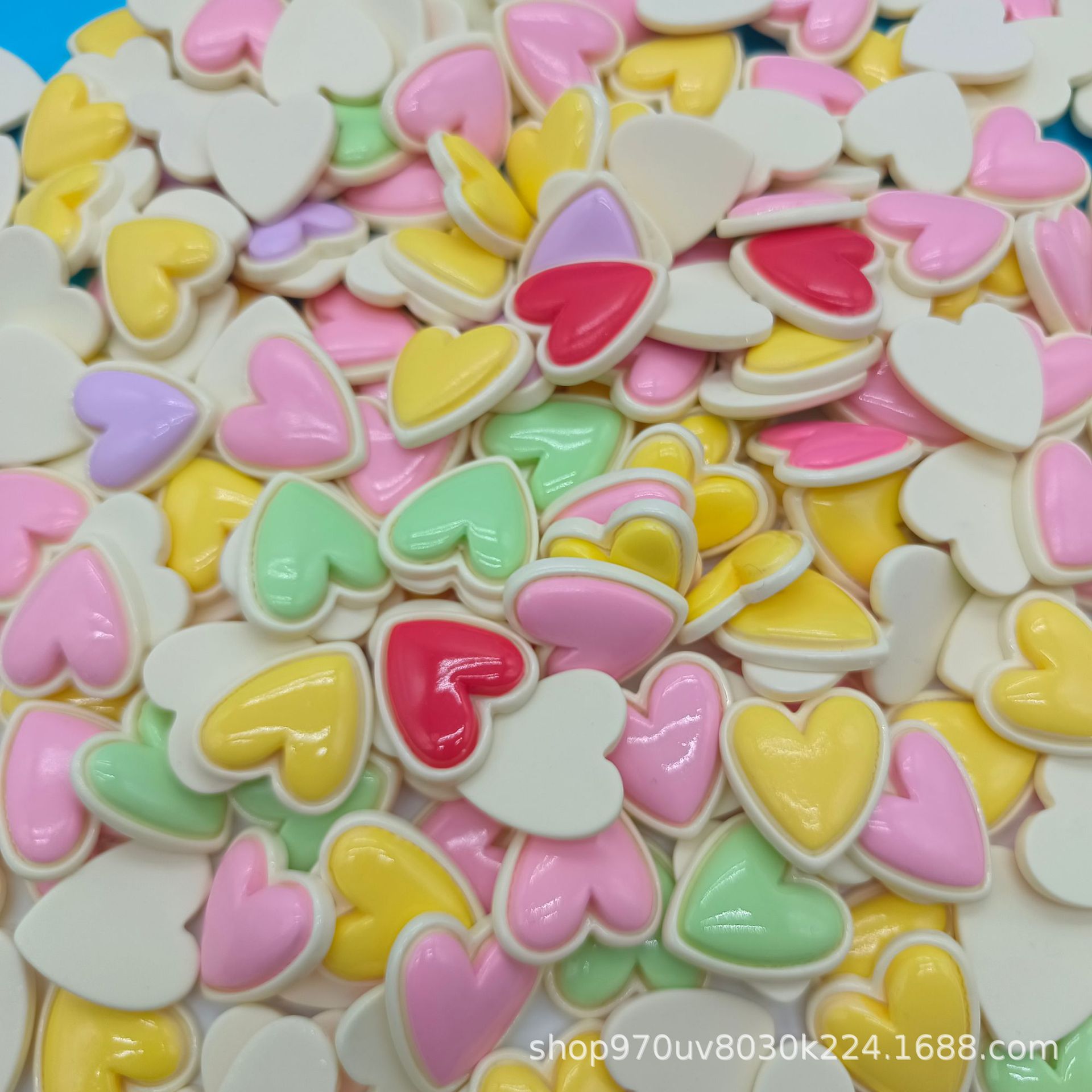 樹脂の明るい顔のハート型のアクセサリーはdiyカラーのハート型のアクセサリーを飾って穴の靴の口のアクセサリーを飾っています。