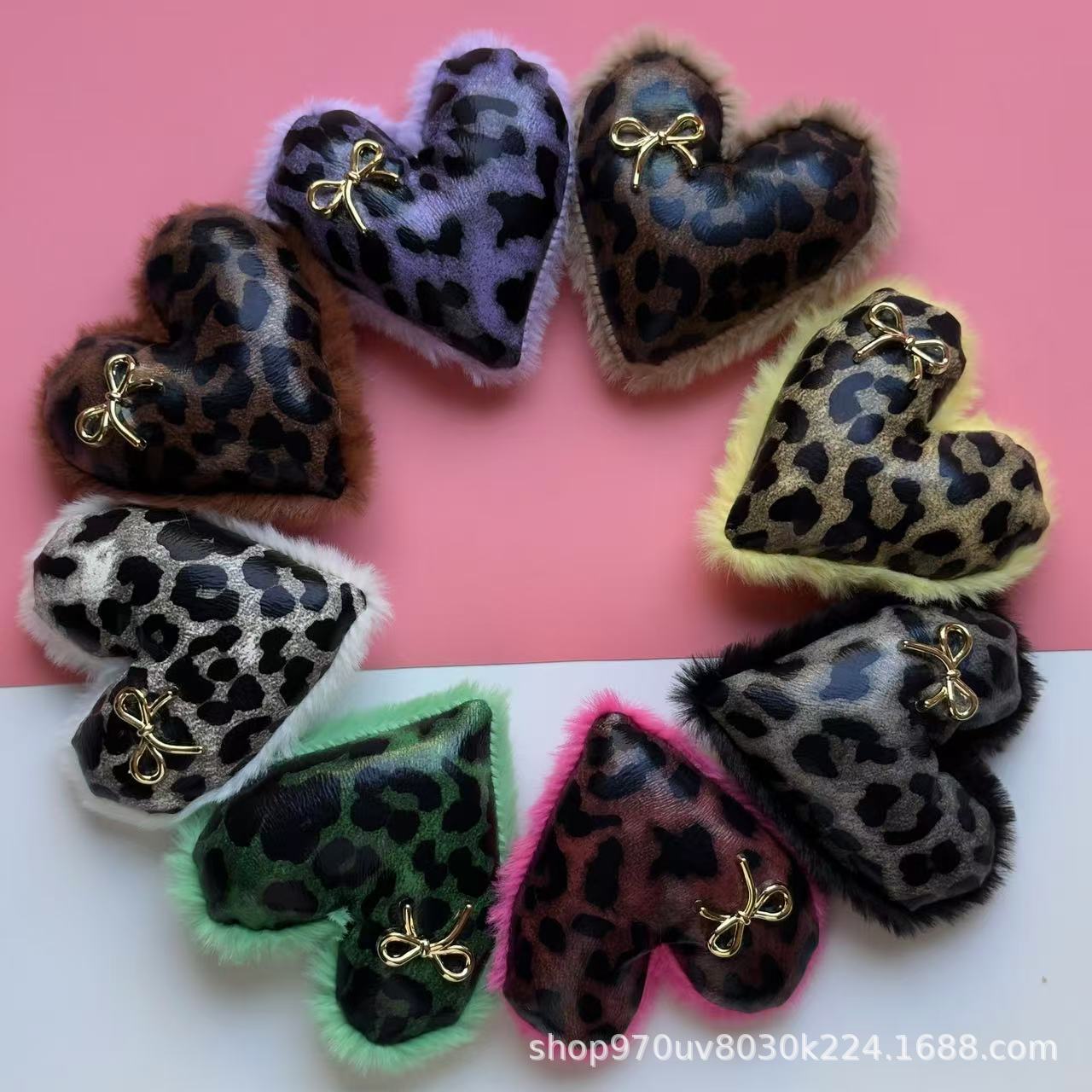 秋冬の韓国版のヒョウの紋様の毛皮は桃の心のDIYのアクセサリの靴のアパレルのアクセサリの贈り物の携帯電話の携帯電話の装飾をつなぎ合わせます。