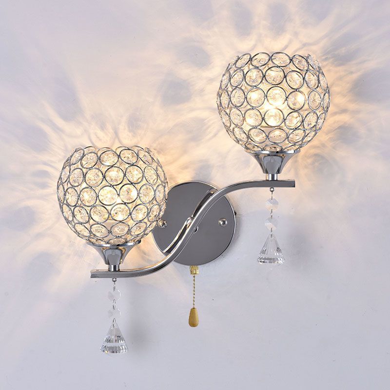 クリスタルウォールランプリビングルーム背景壁ライト高級シンプルモダン子供の寝室ベッドサイド充電配線なし階段通路