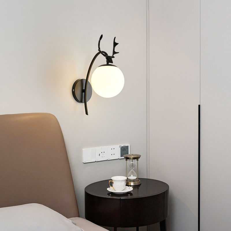Jiumudeng 北欧鹿ヘッドベッドサイドウォールランプ寝室のベッドサイドランプリビングルームの背景の壁ランプ廊下階段通路ランプ