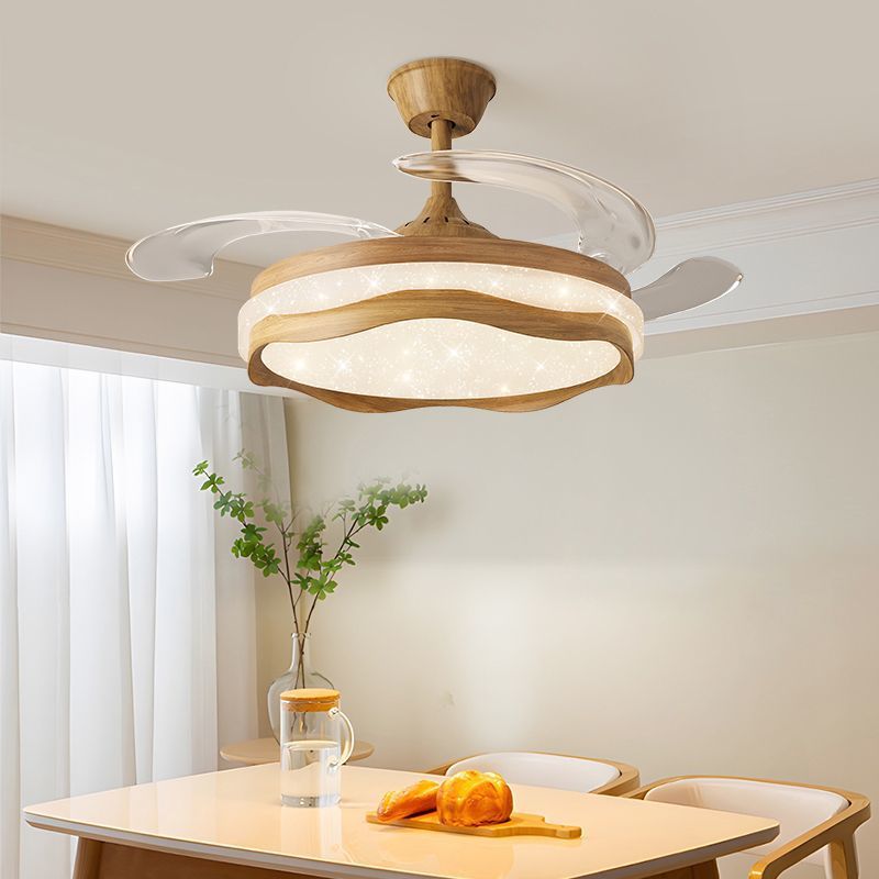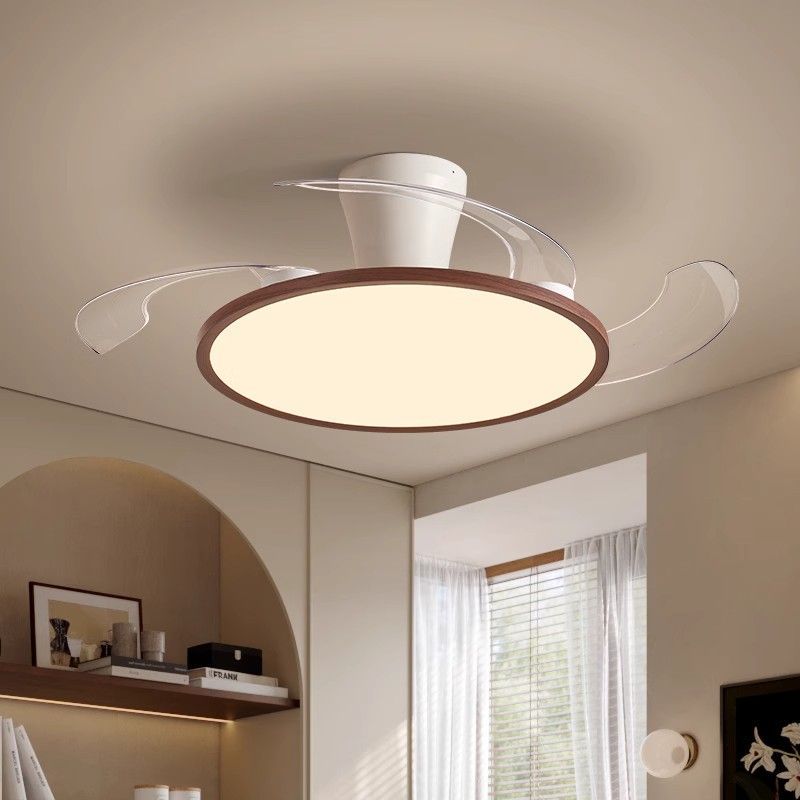 ウォールナットカラーの目に見えないモダンなファンシンプルなオールインワンファン寝室ランプ完全な目の保護レストランダイニングルームの天井ランプ