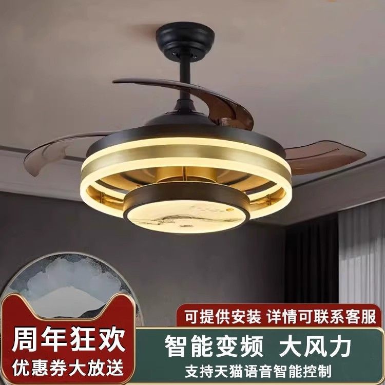 ファンライトダイニングシャンデリアアンティークファンライト目に見えないサイレントオールインワンファンレストラン寝室スペクトル目の保護シャンデリア