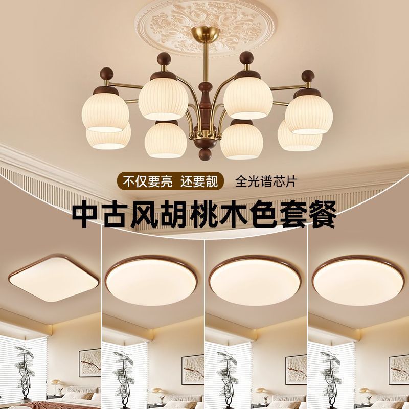 中世スタイルのリビングルームシャンデリアアメリカンレトロハイエンドホールメインライト宋代の美学家全体の照明パッケージの組み合わせ