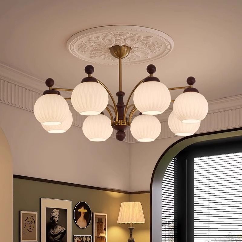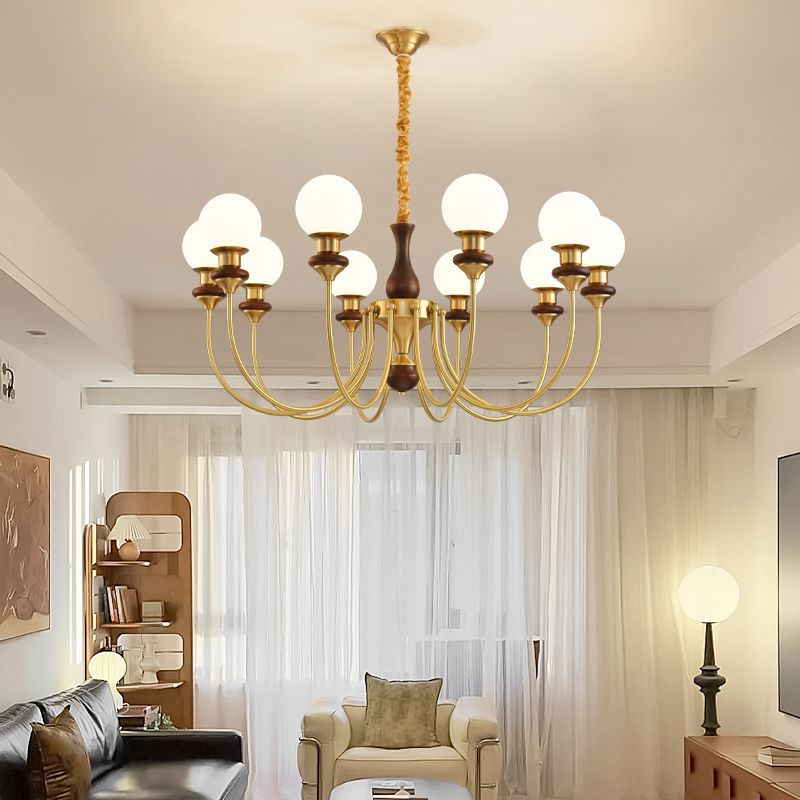 アメリカンリビングルームシャンデリア、アンティークスタイルシャンデリア、無垢材寝室ダイニングルーム、レトロマジックビーンウォールナットカラーガラスシャンデリア