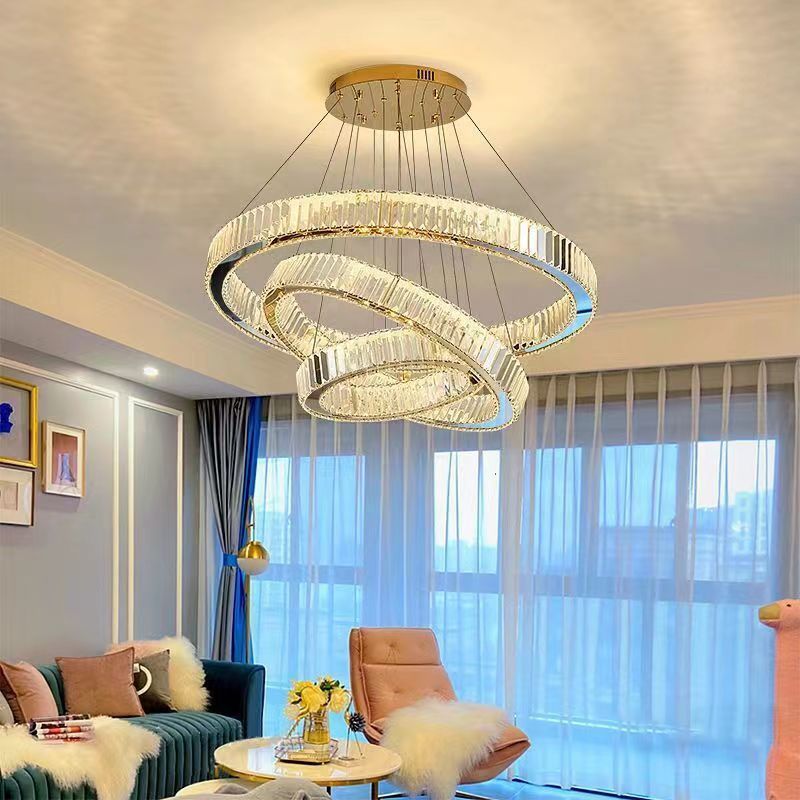 リングクリスタルシャンデリアデュプレックスリビングルームシャンデリアマスターベッドルームダイニングルームシャンデリアルームライト家全体パッケージ照明器具