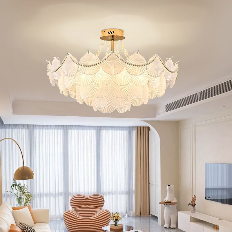 内外フレンチネットレッドシャンデリアクリームスタイルライト高級シェルパールクリエイティブ雰囲気リビングルームメインライト寝室ライト