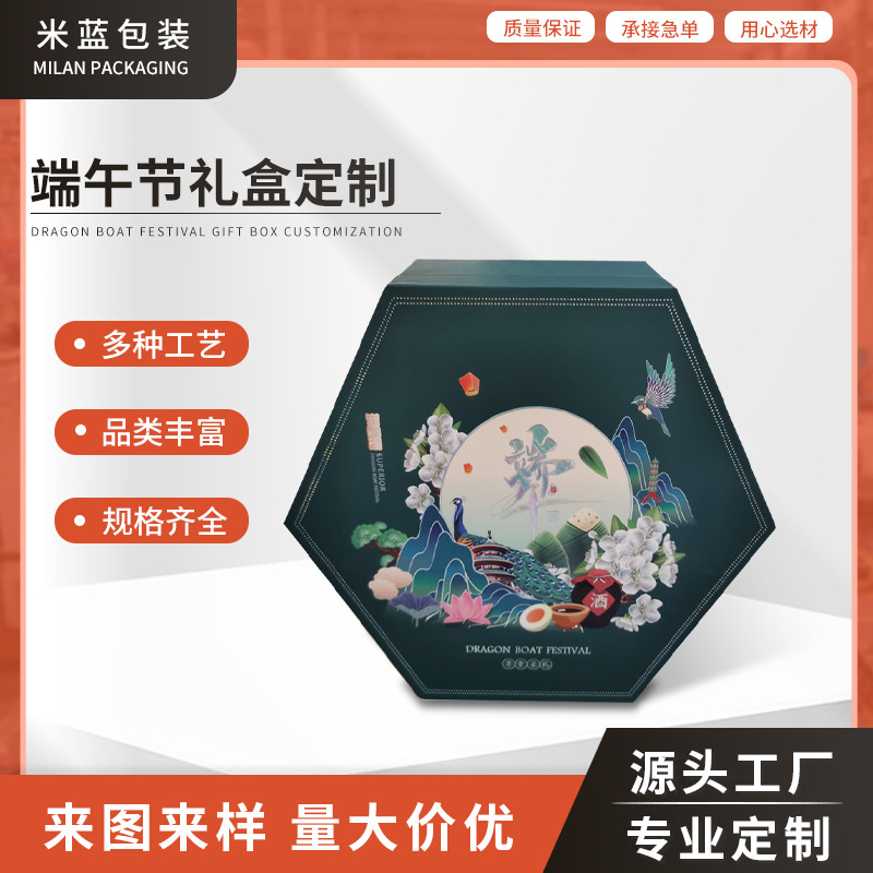 端午の節句の礼箱2025の新型のちまきの包装箱の乾燥した果物の海鮮の多角形は手の礼箱の工場を伴って注文します。