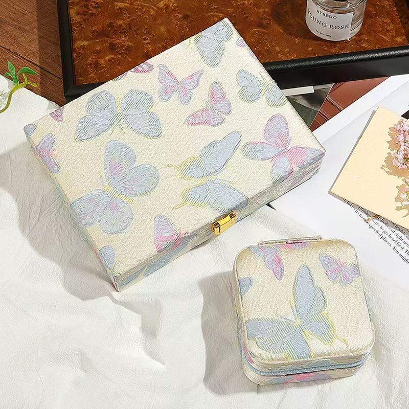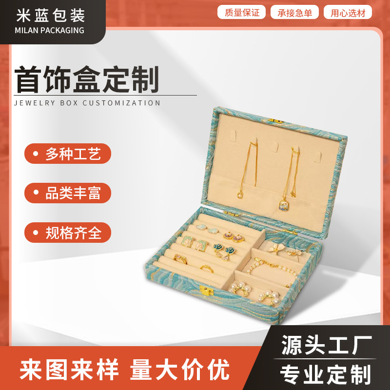 新品刺繍ジャカードジュエリーボックス高级感大容量ピアスピアスリングネックレス収纳ジュエリー収纳ケース