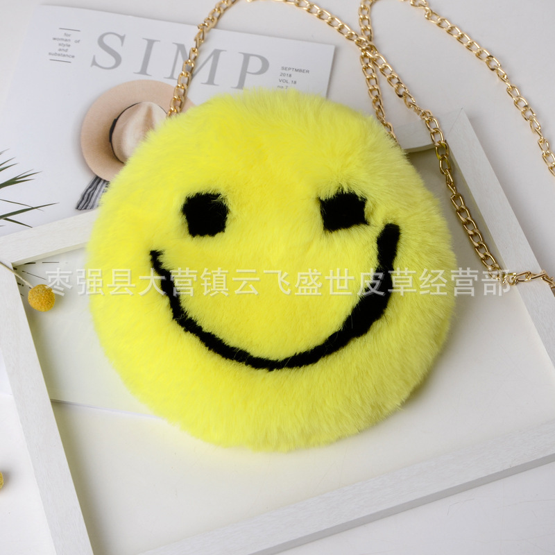韓国版のファッションの新型の笑顔の顔は毛の片肩のチェーンの斜めのショルダーの毛の包みの女性のミニの小銭の化粧袋を包みます。