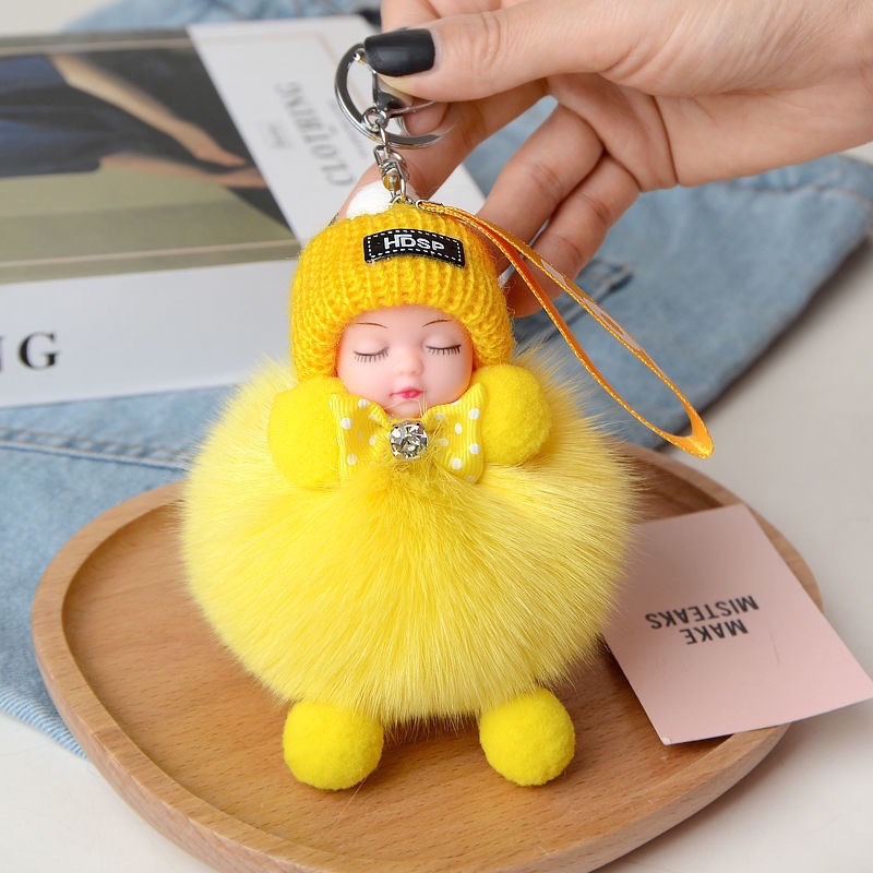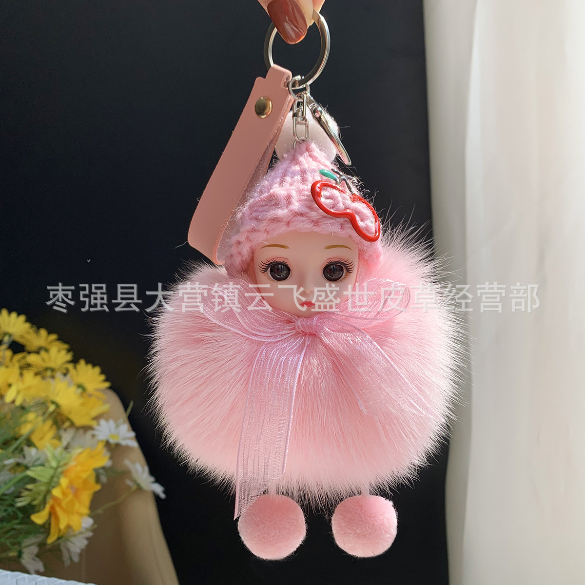 かわいい大きな目の萌え人形のキーホルダー創意的なキツネの毛のぬいぐるみの車のキーホルダー