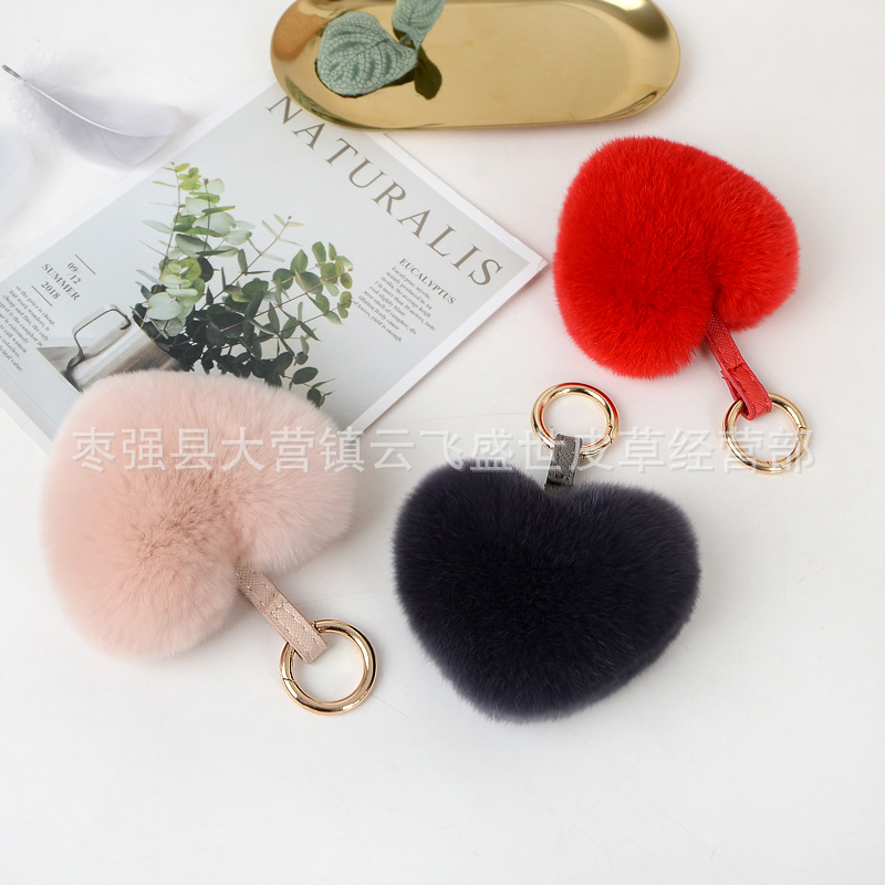 卸売りのウサギの毛の桃の心のペンダントの毛皮の毛のボールの包みは飾ります。