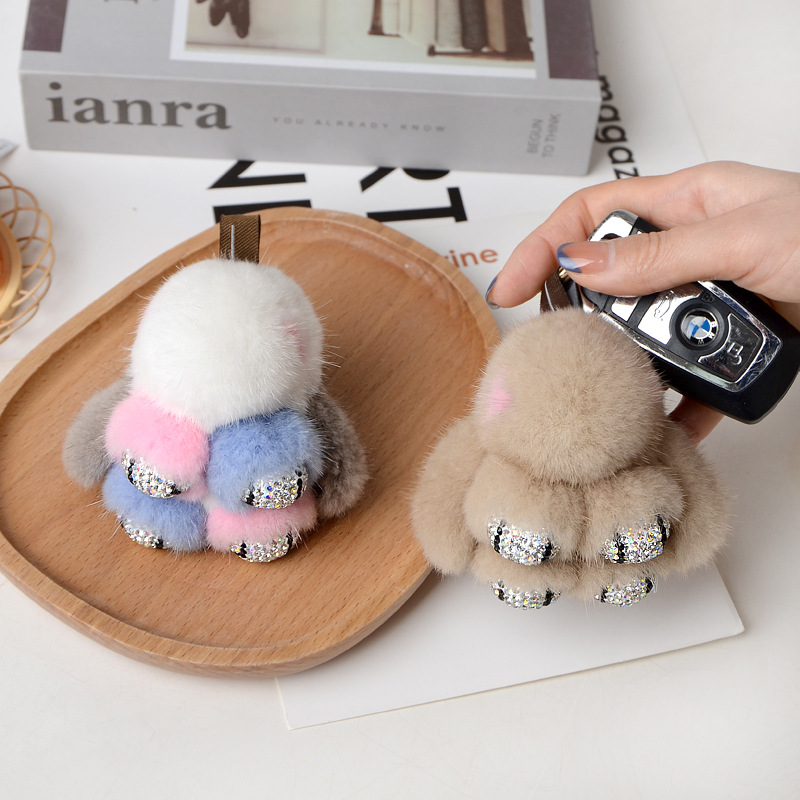卸売りの真毛ミンクは死んだウサギを装って車のキーホルダーを掛けます。