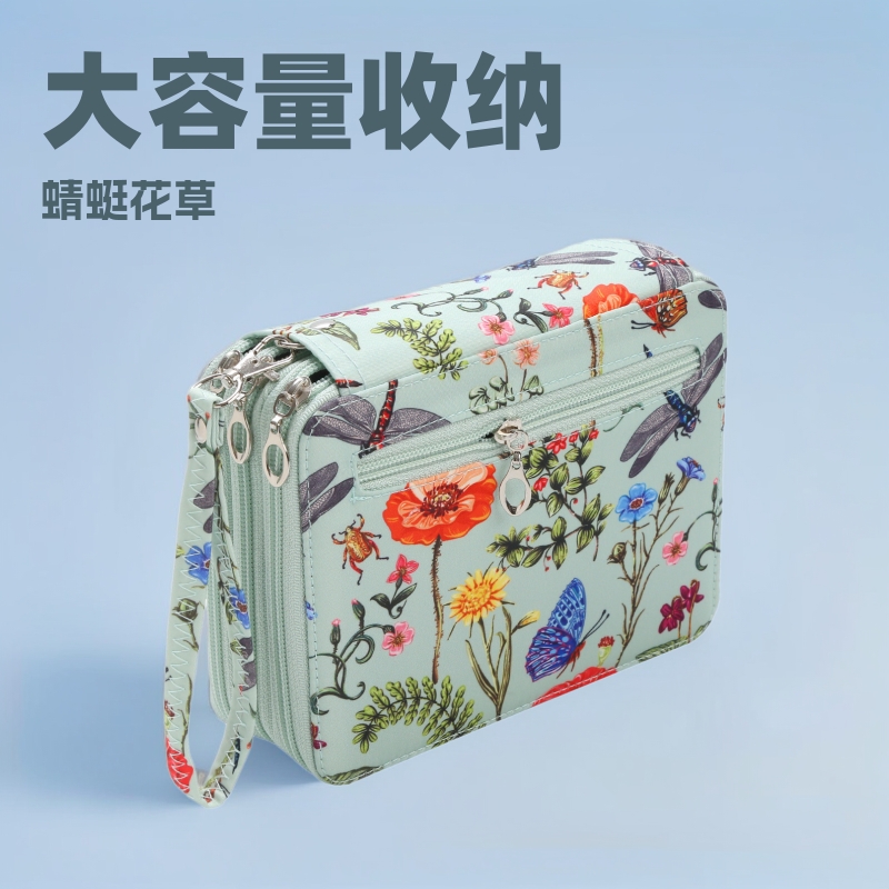 78 穴大容量収納袋アート絵画用品学生鉛筆バッグ生地トンボ花草鉛筆ケース