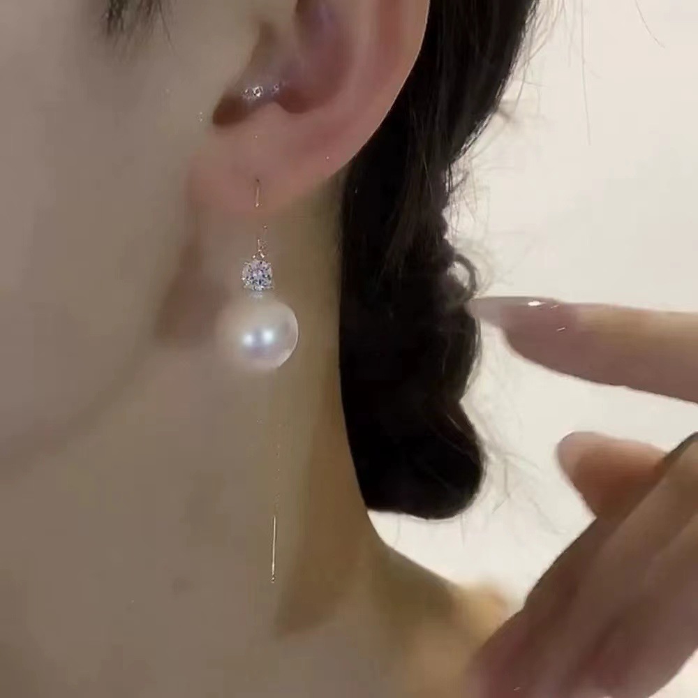 新型韓国版ファッション超仙名媛真珠ロングタイプのフリンジ耳糸ネット赤個性軽豪華なイヤリング