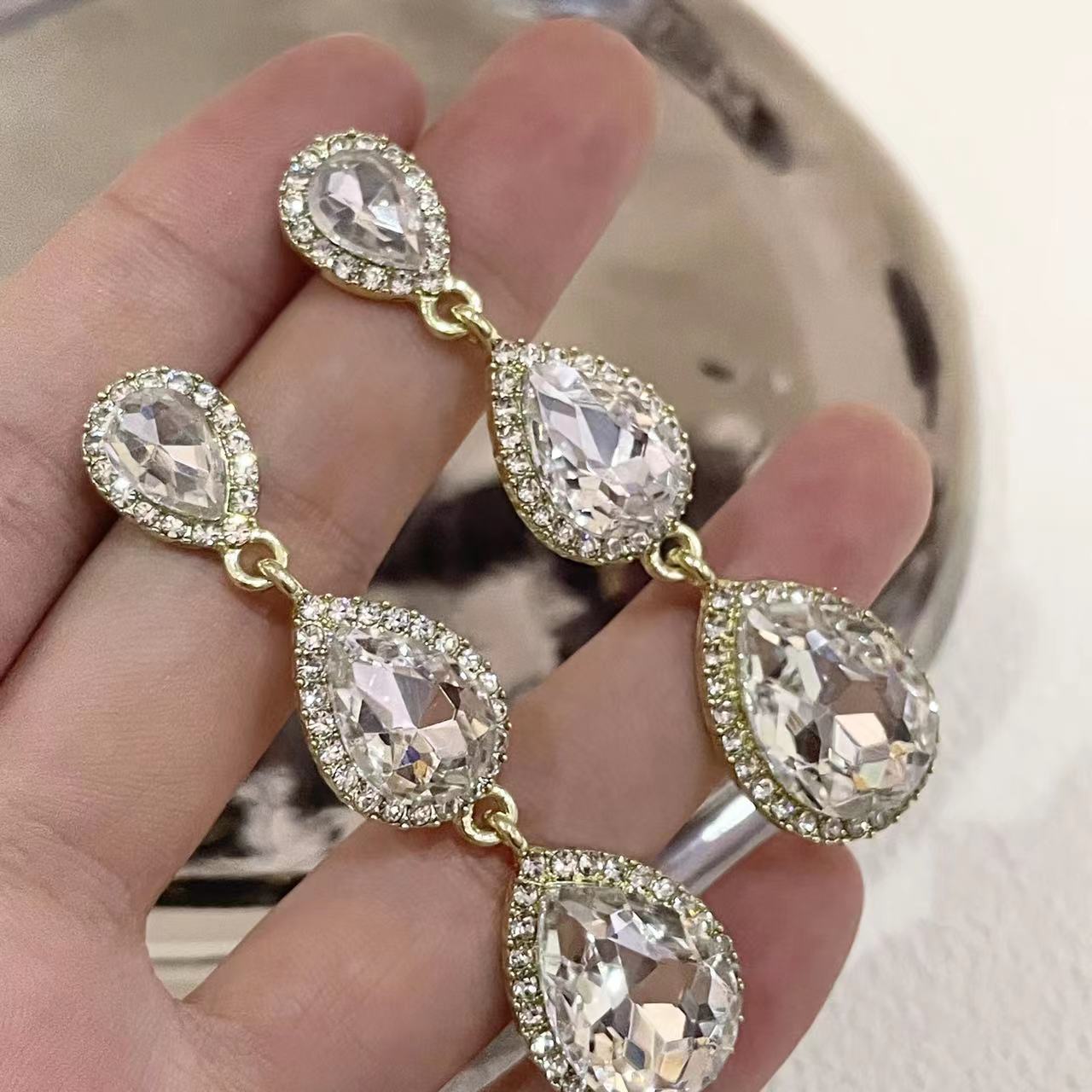 超フラッシュダイヤモンド水滴形のロングタイプのピアスのイヤリングのファッションは、2023年の新しいファッションの耳に合わせています。