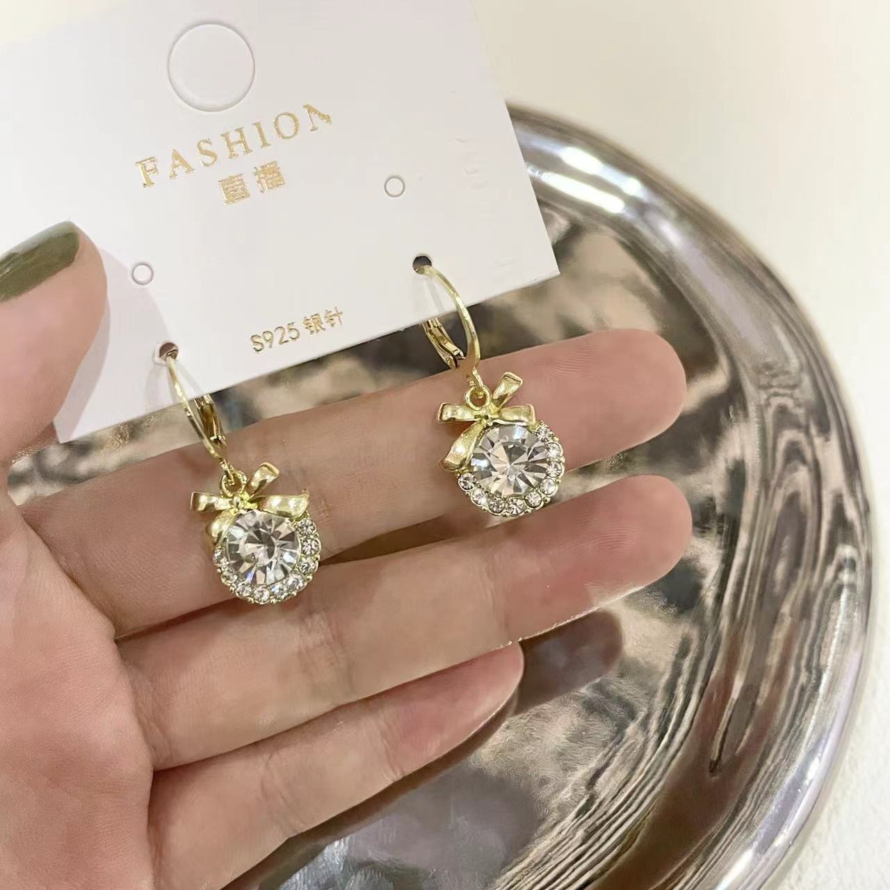 超フラッシュは金色の蝶結びの耳ボタン2023年の新型ファッション高級大衆シンプルなイヤリングをはめ込んだ