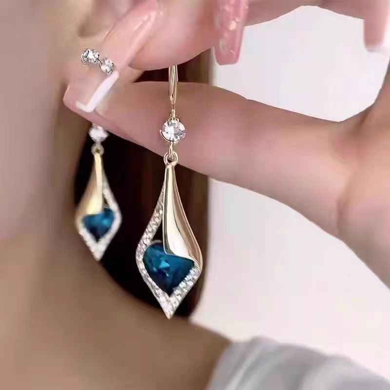 2023新型の超仙気質の高級感の耳飾りの青い菱形の軽豪華な気質の百合のイヤリングの新型の水滴