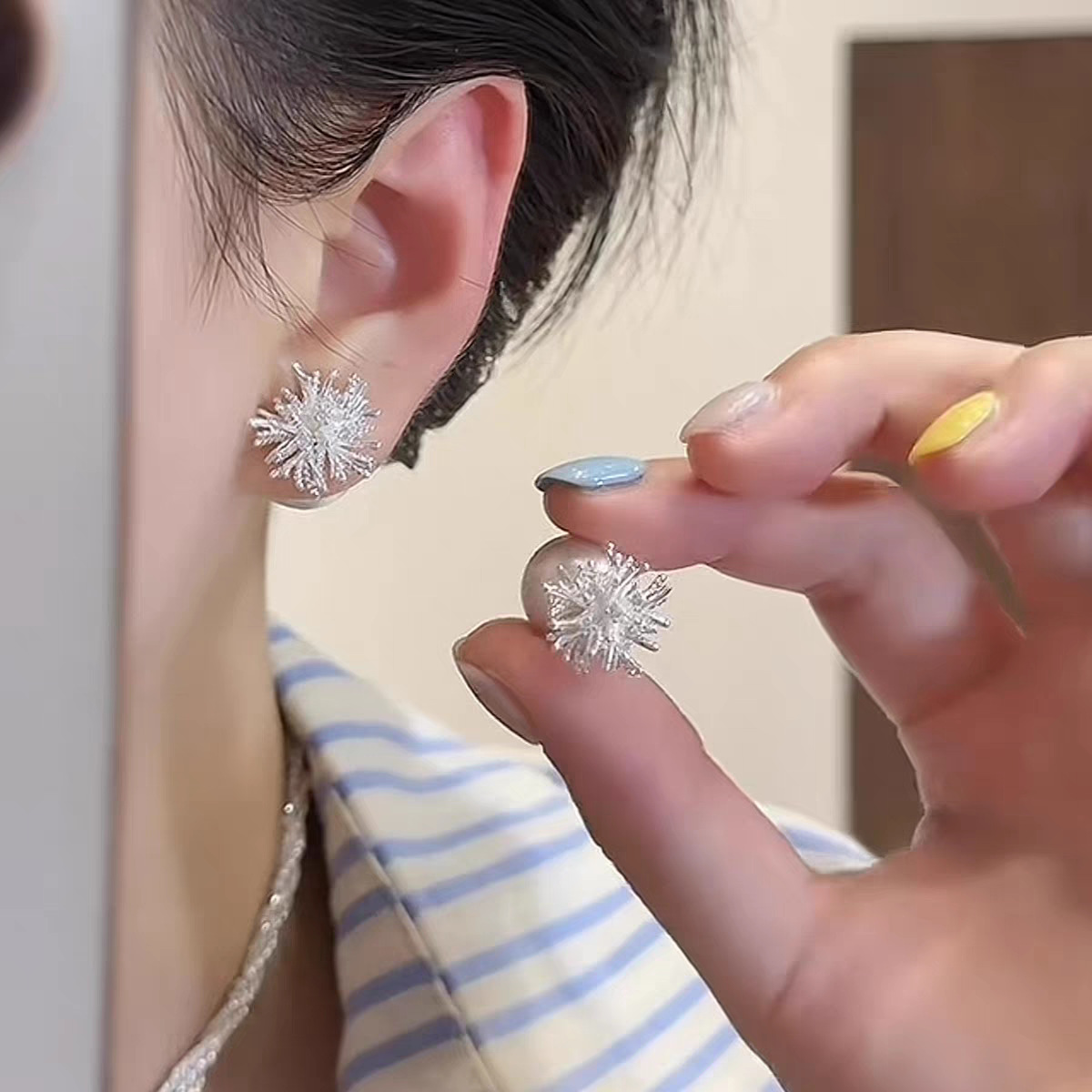 2025 新シルバー花火パールイヤリングニッチハイエンド気質女性韓国ファッションイヤリング 2 つ着用
