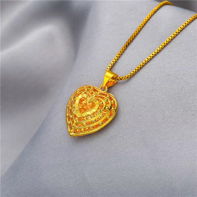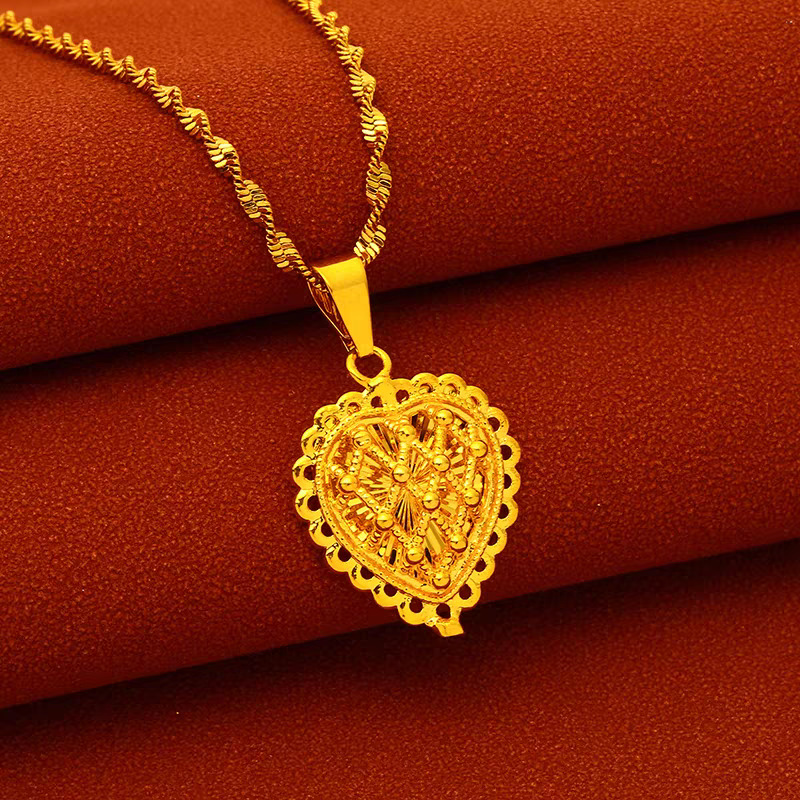 新しいベトナムサンドゴールドペンダント女性のピーチハート中空金メッキネックレス模造ゴールドネックレスネックレス気質多用途