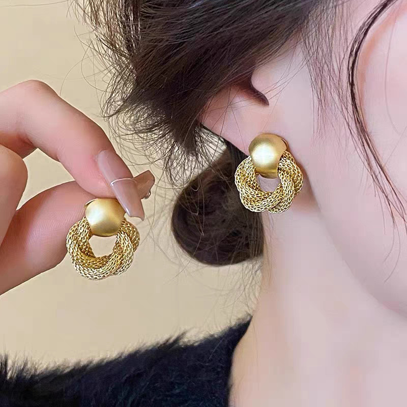 ニッチデザインゴールドメッシュドロップイヤリング 2024 新しいトレンディでエレガントで多用途なイヤリング