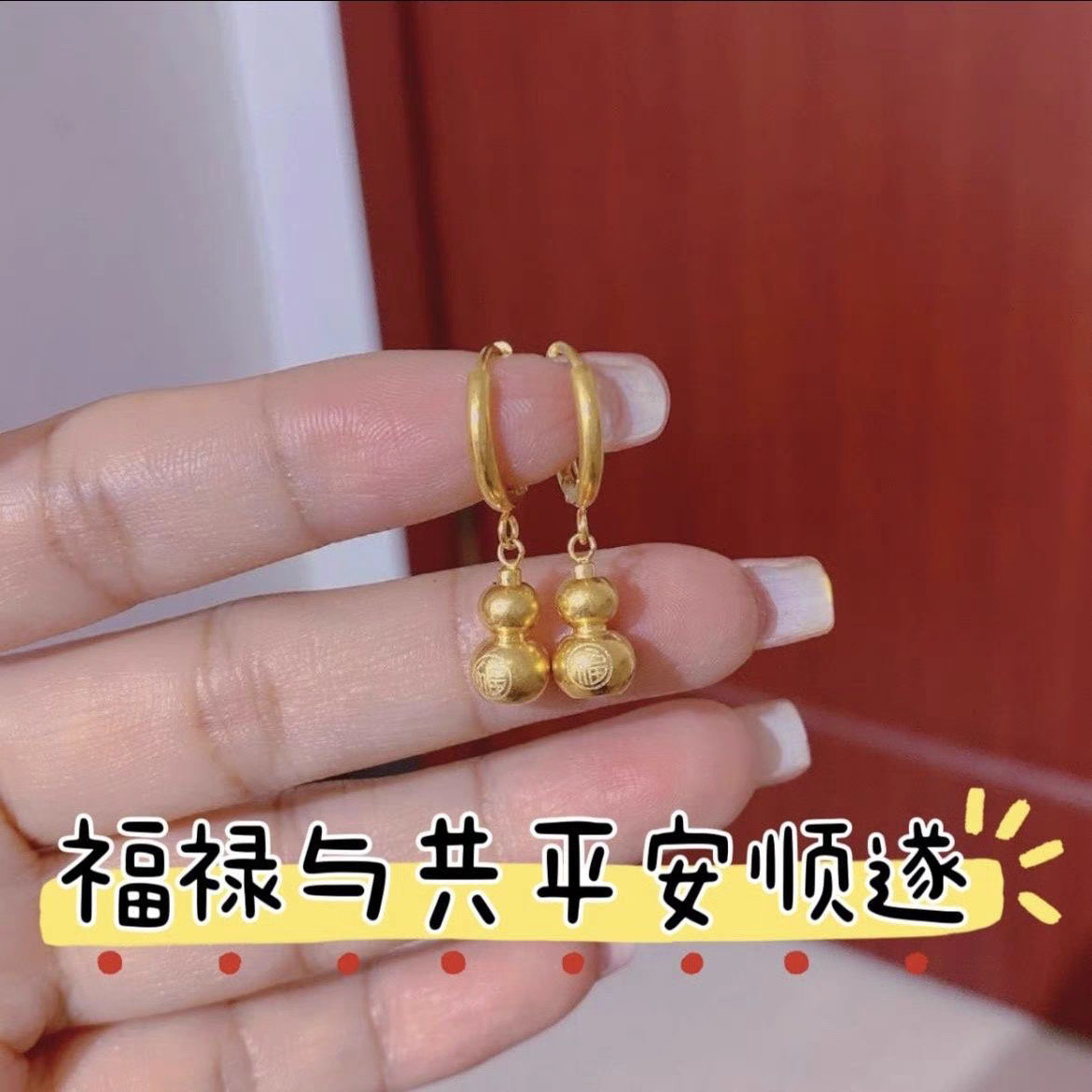 おしゃれなひょうたんイヤリング、イヤリング、福字ひょうたんイヤリング、ゴールドイヤリング、2025年新スタイル