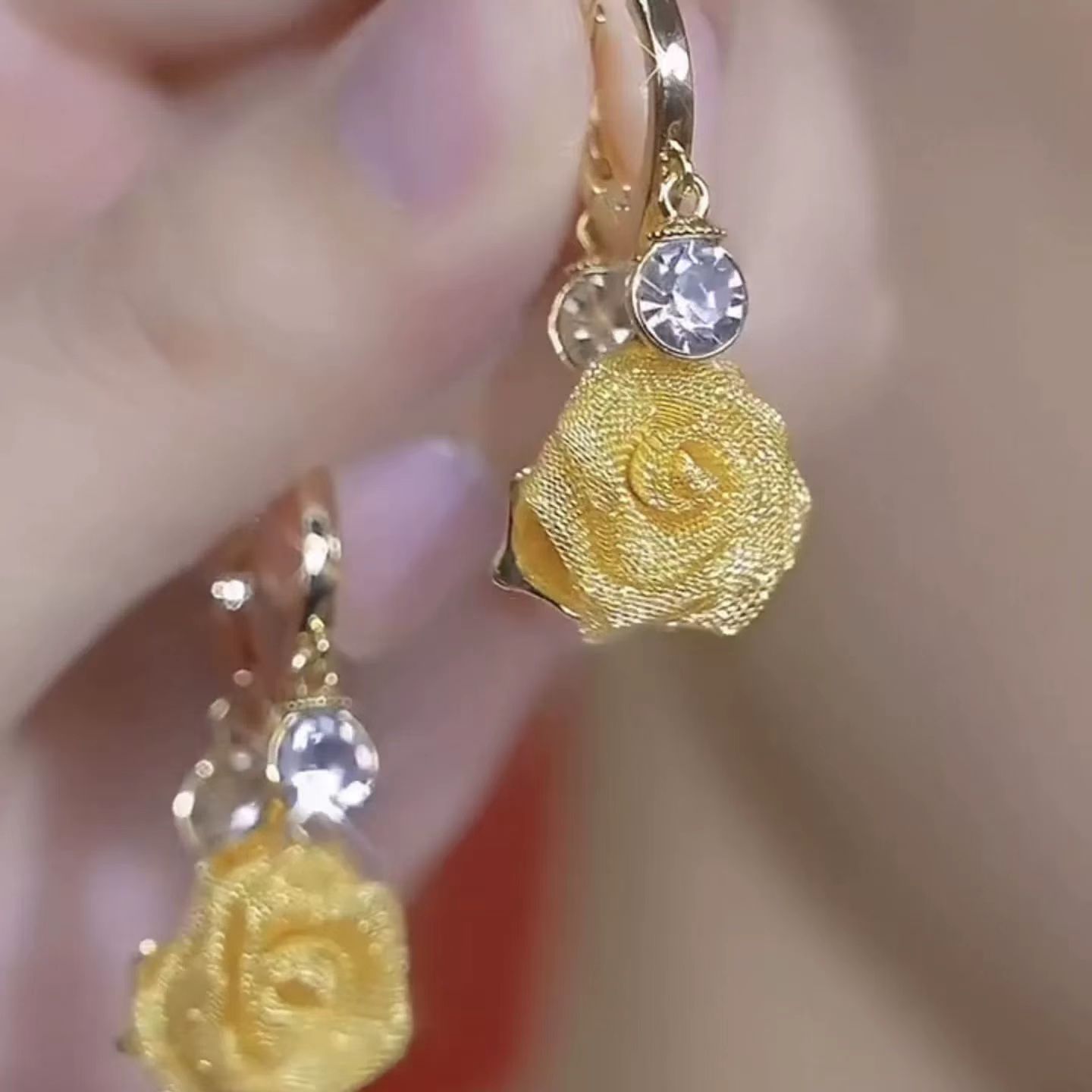 レトロなヨーロッパとアメリカの立体的なメタリックな織りバラのイヤリング中空金糸と銀糸の花のイヤリング