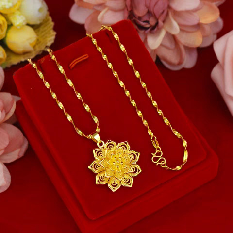 ベトナムサンドゴールドネックレス女性の純金 18 K ゴールドメッキリボンフラワーペンダント鎖骨チェーンゴールドメッキジュエリー