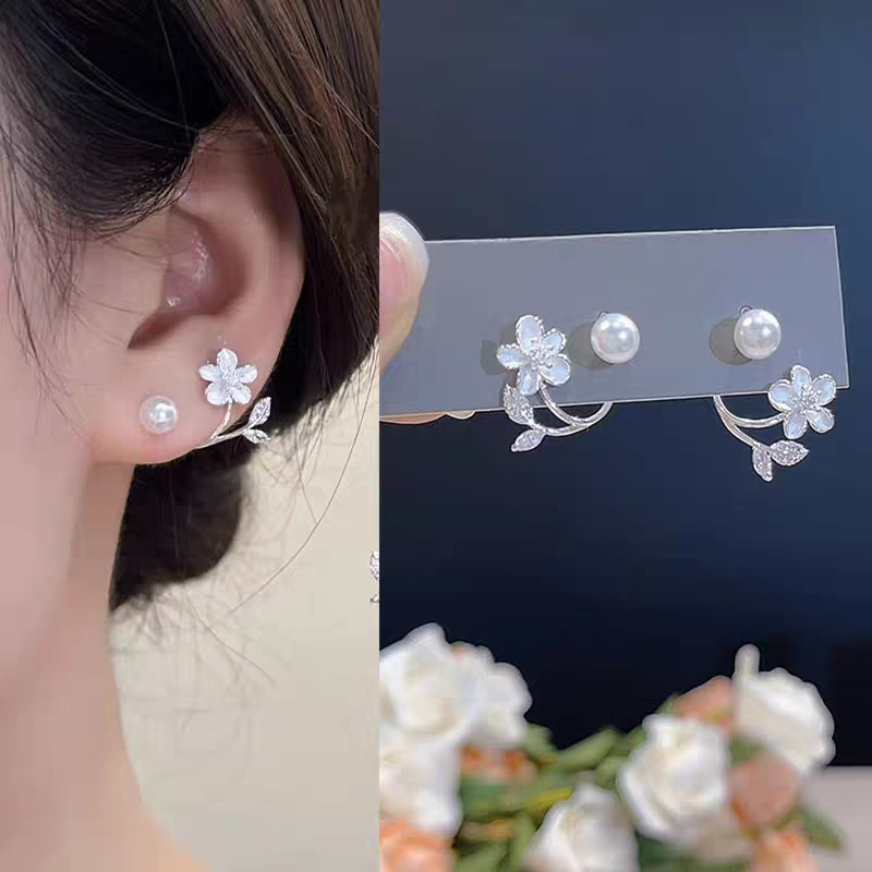 女性用フレンチレトロジルコンフラワーイヤリング、軽くて豪華なニッチデザイン、925シルバー針イヤリング、絶妙で多用途な新しいスタイル