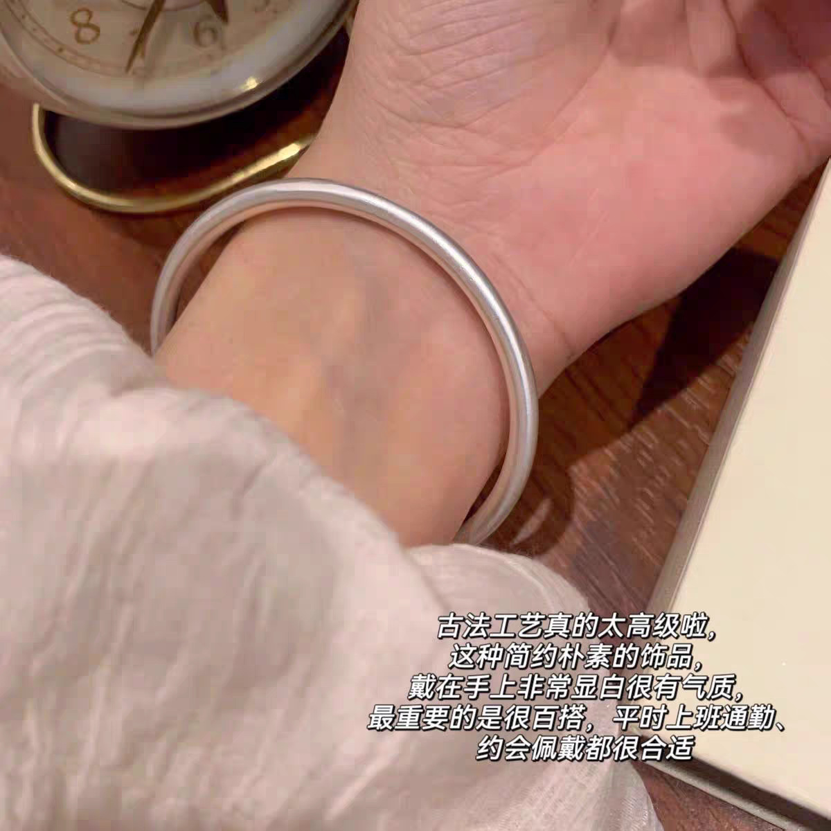 女性用ブレスレット、シンプルで雰囲気のあるニッチデザイン、ハイエンド、2024年新作、古代の無地リングシルバーブレスレットアクセサリー