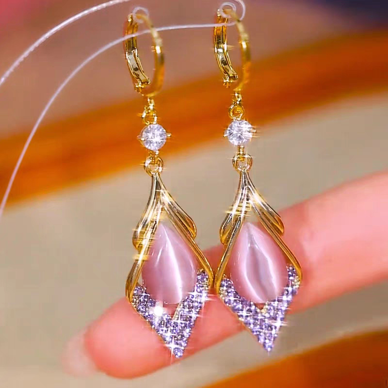 新しいハイエンドの幾何学的な菱形のダイヤモンドがちりばめられた女性用ジルコンキャッツアイイヤリング、ニッチなライトラグジュアリー、フェイススリミングイヤリング、イヤリング