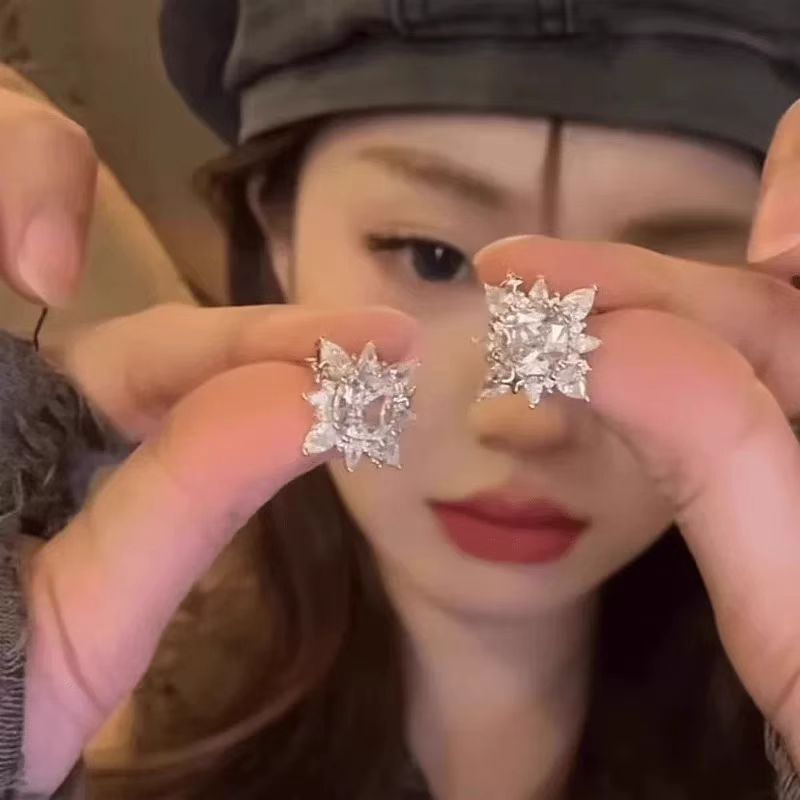 シャイニングスター〜スーパーフラッシュジルコンスタースタッドピアス女性用2025新しいホットスタイルライト高級ハイエンドイヤリング
