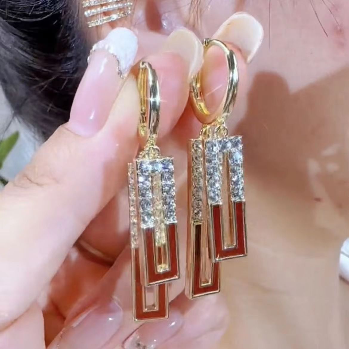 独特なデザインのフランスのレトロな幾何学の長方形の耳のボタンの気質のファッションの高級感の小さい大衆のイヤリングの新型の耳の装飾品
