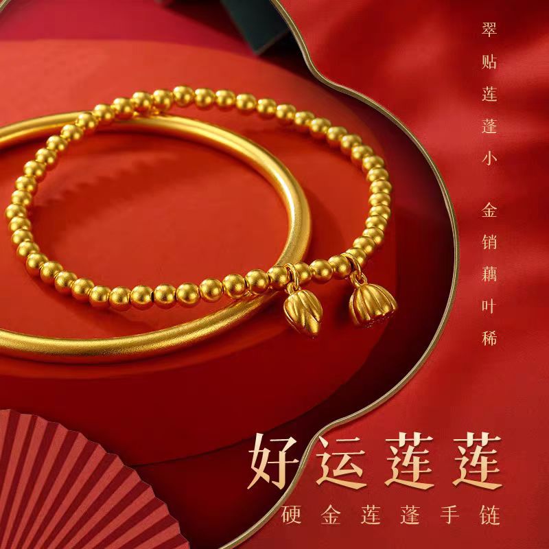 本場ベトナム沙金二世歓ブレスレット女性レトロ中実玉蓮蓬ブレスレット素輪古法伝承沙金