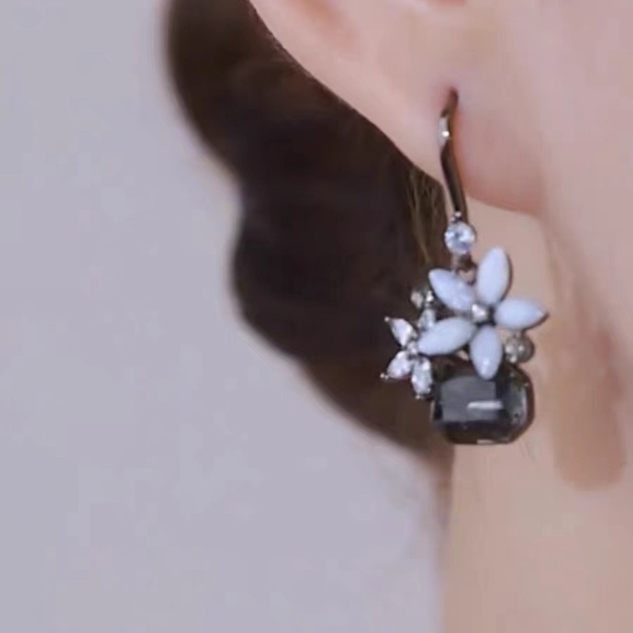 きらきらと光る猫の目の石の花の真珠の小さい大衆のイヤリングの優しい高級な女性の2024年の新型の潮の震えの音の爆発的な耳飾り