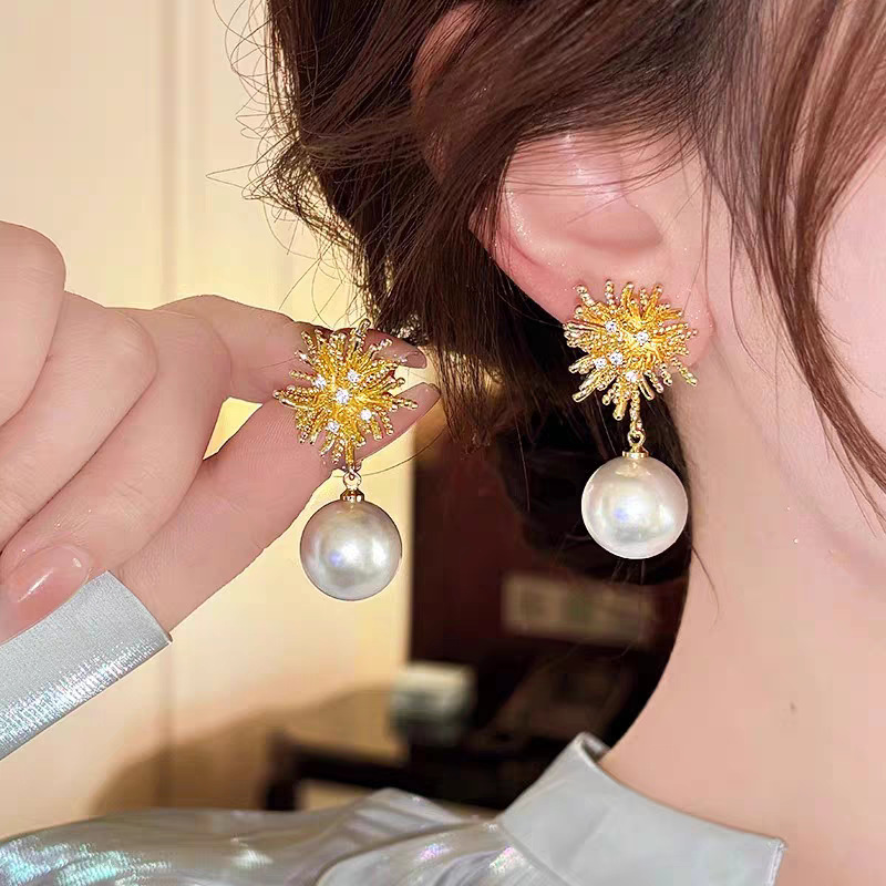 花火パールイヤリング女性の新しいファッションライト高級イヤリングハイエンドシンプルな多用途イヤリングニッチジュエリー